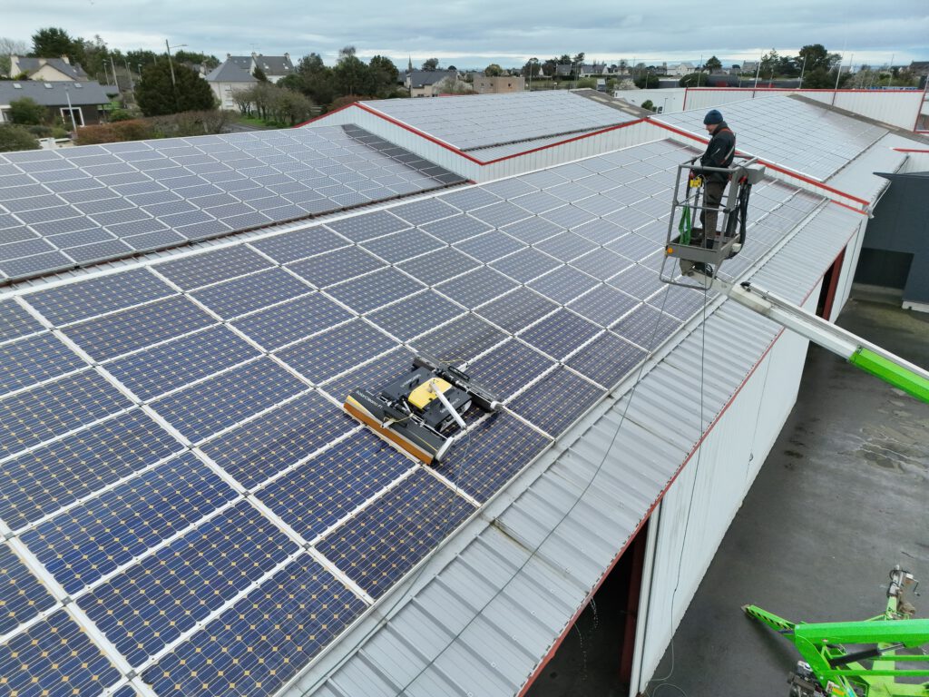 Grâce à des techniciens formés au photovoltaïque, le lavage des panneaux devient un acte de maintenance à part entière permettant de détecter des fissures de surface ou des défauts de fixations.